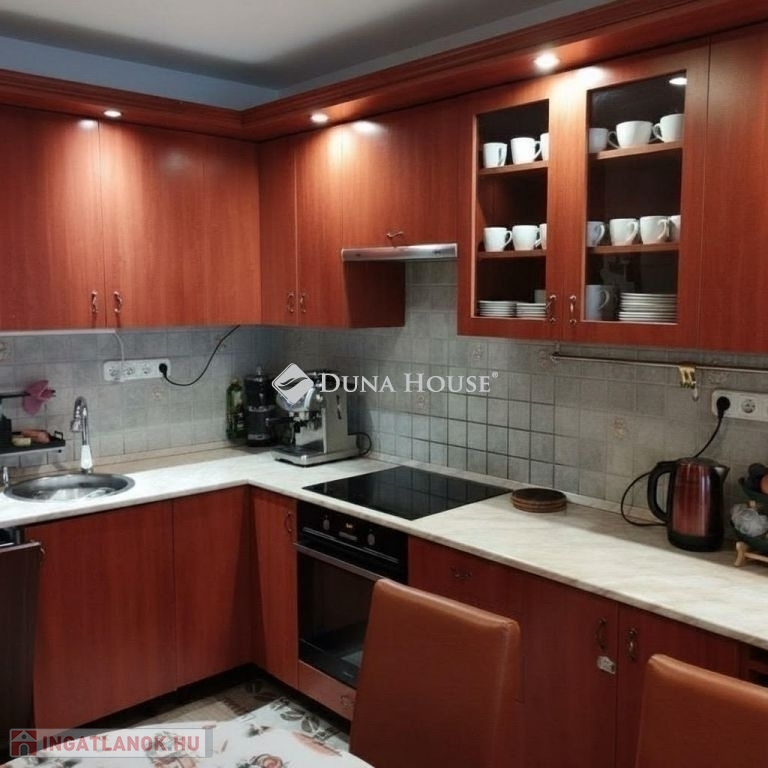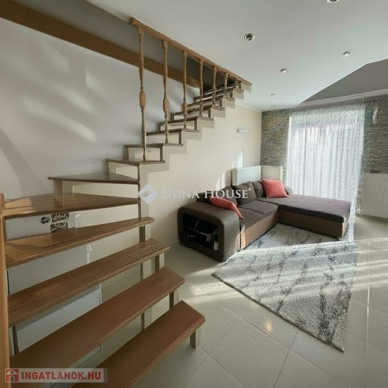 Eladó ez a belső kétszintes lakás egy 2003-ban épült, 20 lakásos porotherm vázkerámiás társasház negyedik emeletén.A lakás három szobás, de akár négy szobássá is alakítható, így rugalmasan igazítható a család igényeihez. A 10 cm-es belső válaszfalak lehetőséget adnak a terek egyedi kialakítására.Földszint (52 m2) :Előtér a bejárattal szemben praktikus gardróbszekrény gondoskodik a kabátok és lábbelik rendszerezéséről.Jobbra nyílik a fürdőszoba, külön wc.Az előszobából a tágas konyhaétkezőbe érkezünk, innen jutunk tovább a nagy nappaliba, amelyhez egy részben fallal elválasztott, külön nyíló szoba is kapcsolódik.Galéria (43 m2):A felső szinten a belmagasság minden helyiségben 2,80 m felett van, így a terek itt is tágasak és kényelmesek. A lépcsőn felérve a galéria térbe érkezünk, ahol egy dolgozószoba kapott helyet. Mellette található egy fallal részben leválasztott szobarész üvegtégla fallal, valamint egy külön hálószoba és egy praktikus gardrób is.A lakásban többrétegű műanyag nyílászárók biztosítják a csendet és a hőszigetelést, elektromos redőnyökkel felszerelve.Az emeleten található tetőablak is elektromosan nyitható.A belmagasság mindenhol 2,80 m felett van, így a terek tágasak és világosak, a galéria szinten is kellemes légérzetet biztosítva.A ház központi fűtéssel rendelkezik, egyedi mérőkkel, így a fogyasztás könnyen ellenőrizhető.Teremgarázs beálló (20 m2) + tároló (4 m2):A vételár tartalmaz egy teremgarázs kocsibeállót, valamint a mögötte található tárolót, amely praktikus pluszt jelent a mindennapokban.A lakás a negyedik emeleten található, de lifttel is könnyen megközelíthető; a lift modern és újszerű állapotban van.A társasházhoz egy hatalmas, füvesített belső kert tartozik grillsütővel, amely ideális a pihenésre és a baráti összejövetelekre.Ez a lakás ideális választás azoknak, akik szeretik a tágas tereket és a gyönyörű napfelkeltéket. A ház kellemes, barátságos lakóközösséggel rendelkezik. Az ingatlan környéke kiváló infrastruktúrájú: a közelben buszmegállók, boltok, iskolák, óvodák és bölcsődék találhatók. Számos kikapcsolódási lehetőség és vendéglátó egység is könnyen elérhető.