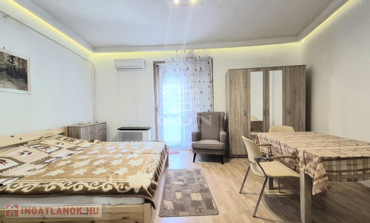 szomszédságában téglaszerkezetű társasház magasföldszintjén, eladásra kínálok, egy 39 m2-es, alacsony fenntartású, egy szobás, erkélyes, napos-világos fekvésű, műanyag nyílászárókkal felszerelt, konvektor fűtéses, klimatizált, azonnal költözhető lakást!