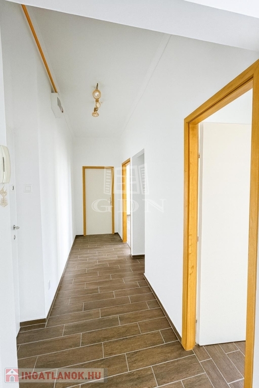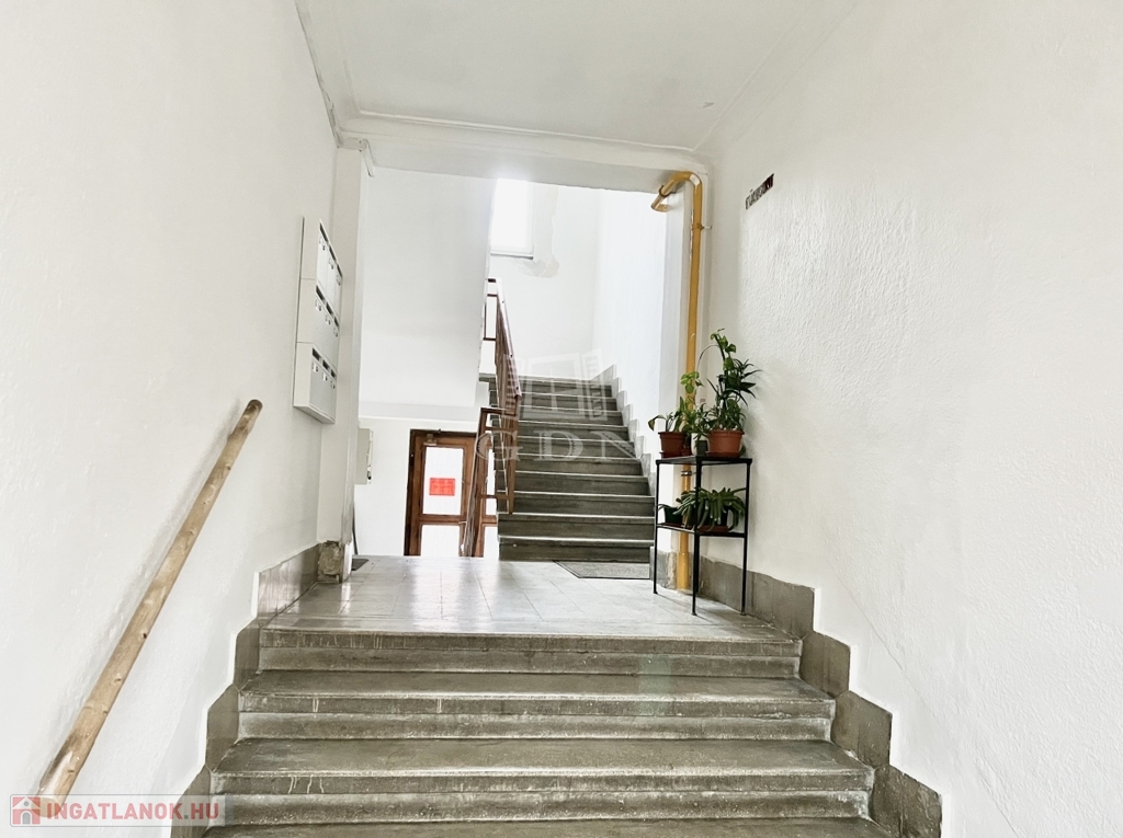 A téglaépítésű társasház 2. emeleti lakása amerikai konyhás nappalival, egy tágas szobával és egy félszobával rendelkezik. A hosszú folyosóról külön nyílnak a helyiségek, a kádas fürdőszoba WC-vel, valamint a külön WC is.