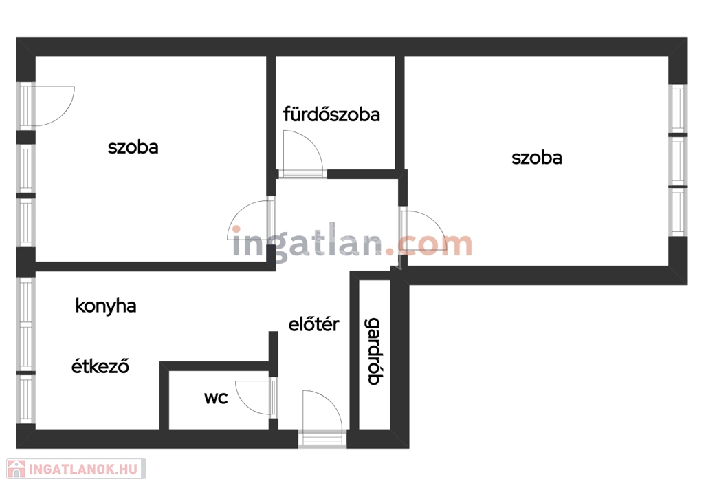 2 szoba + étkezős konyha