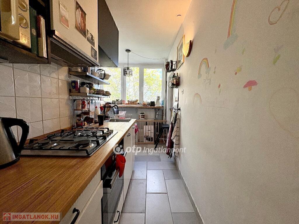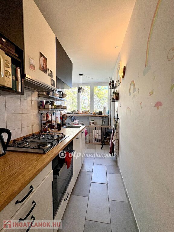 A világos konyha-étkező barátságos, jól használható teret biztosít a mindennapokhoz. Az ingatlan szinte azonnal költözhető, ráadásul tehermentes és egy tulajdonostól eladó.