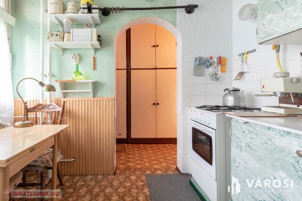 A lakás jelenleg beköltözhető állapotú, de teret ad egy felújítással kapcsolatos elképzeléseknek. Fa nyílászárói vannak, a belső ajtók főként üvegezettek, az ablakok rolettával ellátottak.