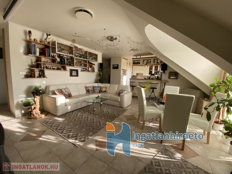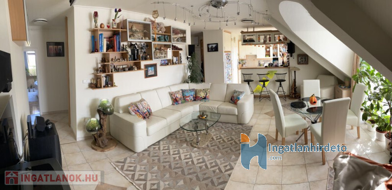 Elhelyezkedése: Belterület Emeleti elhelyezkedés: Emeleten Emelet száma: 3 Épület emeleteinek száma: 3 Állapota: Kiváló Komfort besorolása: összkomfortos Építési éve: 2008 Alapterülete: 102 m2 Szobák száma: 4 + 1 szoba Közművek: Gáz Fűtés módja: Gáz Fűtés típusa: Cirkó Homlokzat állapot: új Építési mód: Tégla Tető formája: Lapos Parkolási lehetőség: Garázsban, Utcán, Parkolóházban Kilátás: Utcafronti kilátás, Udvari kilátás, Városi panoráma Napelem: Nincs Jellemzői: Alacsony rezsi, Csendes környék, Jó közlekedés, Redőny, Ikergarázs, Légkondicionáló, Étkező, Udvari terasz, Amerikai konyha, Beépíthető tetőtér, Beépített szekrény, Beépített konyhabútor, Kaputelefon, Kert, Parketta burkolat, Zöldterület, Jó közbiztonság, Beépített tetőtér Energetikai besorolás: Nincs adat Egyéb jellemzők: Terasz, Lift, Tetőtér Tv, Internet: Kábeltévé, Internet, Vezetékes telefon Közelben: Iskola, Óvoda, Közelben metró, Villamos, Vasútállomás, Autóbuszállomás, Helyi autóbuszállomás, Orvosi rendelő, Bolt, Gyógyszertár, Postahivatal, Vendéglátó egység, Autópálya Rezsi költség(Ft): 50000 Terhelések: Tehermentes ingatlan Eladásra vonatkozó információk: Az ár tartalmazza a teljes berendezést, Azonnal beköltözhető