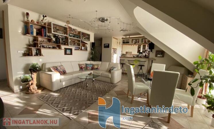 Elhelyezkedése: Belterület Emeleti elhelyezkedés: Emeleten Emelet száma: 3 Épület emeleteinek száma: 3 Állapota: Kiváló Komfort besorolása: összkomfortos Építési éve: 2008 Alapterülete: 102 m2 Szobák száma: 4 + 1 szoba Közművek: Gáz Fűtés módja: Gáz Fűtés típusa: Cirkó Homlokzat állapot: új Építési mód: Tégla Tető formája: Lapos Parkolási lehetőség: Garázsban, Utcán, Parkolóházban Kilátás: Utcafronti kilátás, Udvari kilátás, Városi panoráma Napelem: Nincs Jellemzői: Alacsony rezsi, Csendes környék, Jó közlekedés, Redőny, Ikergarázs, Légkondicionáló, Étkező, Udvari terasz, Amerikai konyha, Beépíthető tetőtér, Beépített szekrény, Beépített konyhabútor, Kaputelefon, Kert, Parketta burkolat, Zöldterület, Jó közbiztonság, Beépített tetőtér Energetikai besorolás: Nincs adat Egyéb jellemzők: Terasz, Lift, Tetőtér Tv, Internet: Kábeltévé, Internet, Vezetékes telefon Közelben: Iskola, Óvoda, Közelben metró, Villamos, Vasútállomás, Autóbuszállomás, Helyi autóbuszállomás, Orvosi rendelő, Bolt, Gyógyszertár, Postahivatal, Vendéglátó egység, Autópálya Rezsi költség(Ft): 50000 Terhelések: Tehermentes ingatlan Eladásra vonatkozó információk: Az ár tartalmazza a teljes berendezést, Azonnal beköltözhető