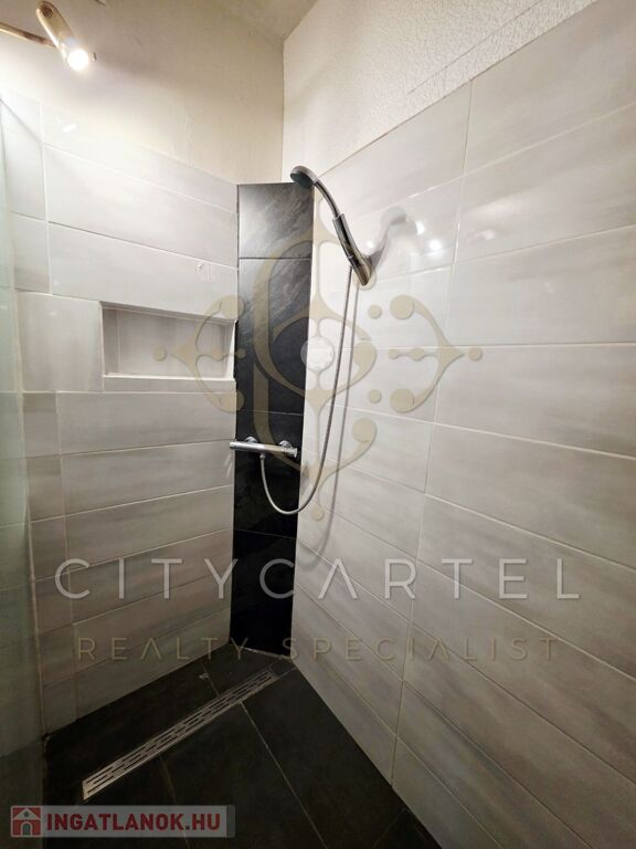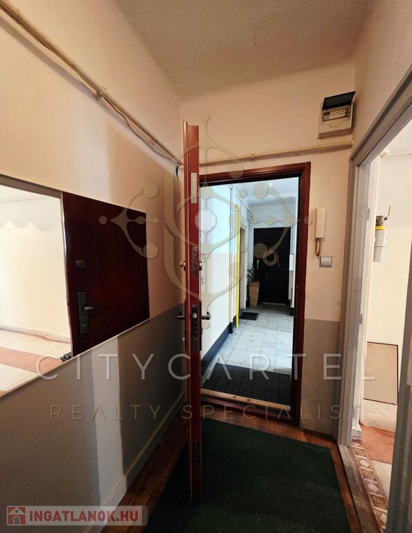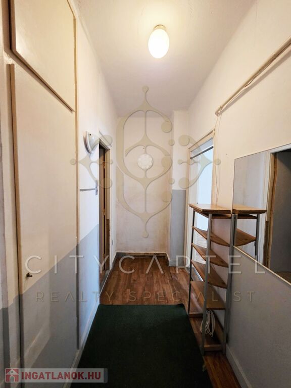A 20 nm-es nagyszoba parkettás, egy csiszolással újjá varázsolható. A fürdőszoba felújított, zuhanykabin került beépítésre. Az előszobában linóleum burkolat, de kevés ráfordítással ez is széppé tehető.