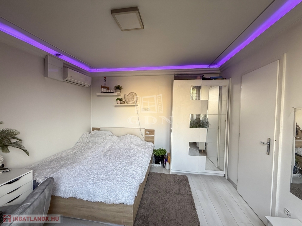 A lakás két külön nyíló, szeparált szobával rendelkezik; a korábbi átjáró lefalazásra és hangszigetelésre került. A felső irányból érkező zajok csökkentése érdekében az ingatlan 10 cm-es hangszigetelést kapott, így kifejezetten csendes, nyugodt lakókörnyezetet biztosít.