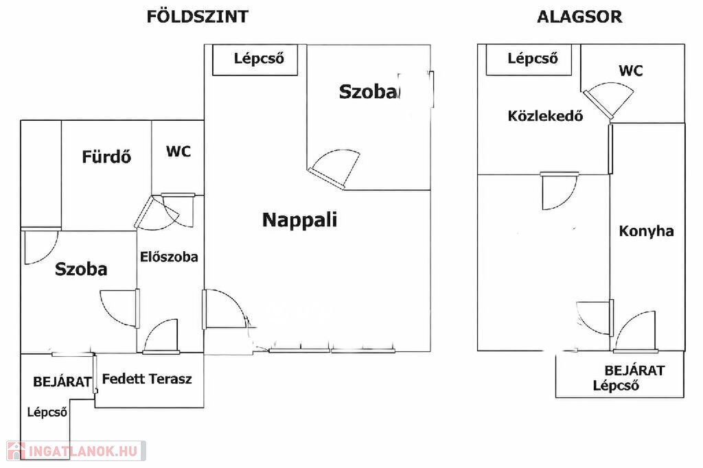 Az alsó szinten egy szoba vagy étkező, konyha, WC, valamint közvetlen kijárat a kertbe.