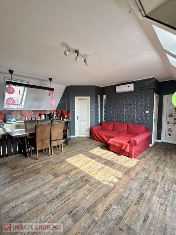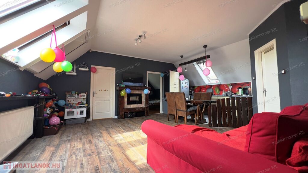 Soroksáron a Hősök terénél eladó, 4 lakásos társasházban, bruttó 85nm tetőtéri lakás. Az ingatlanhoz tartozik 52nm terasz, 28nm GARÁZS, 2 kocsi beálló és 176nm saját, lekerített kert!