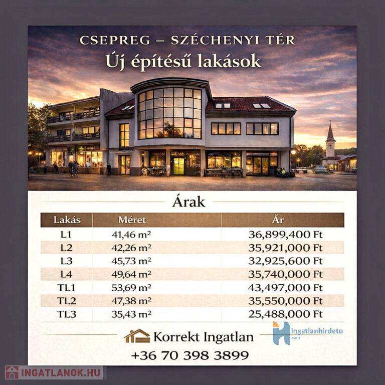 Csepreg belvárosában újonnan kialakított lakások eladók!✅