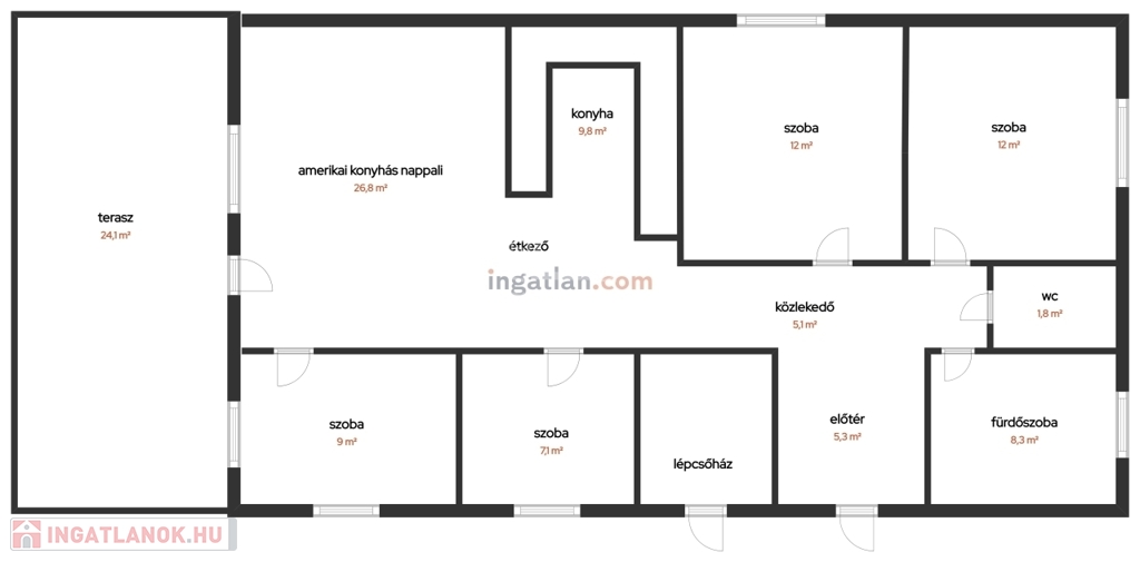 Az ingatlan nettó 89 m² lakótérrel rendelkezik, amelyhez tartozik egy 45 m²-es garázs és mosókonyha szint, valamint egy 24 m²-es terasz, amely közvetlenül a nappaliból nyílik.