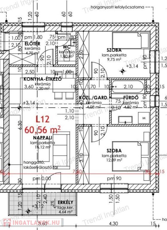 A meghirdetett 1. emeleten található 60,56 nm-es ingatlanban amerikai konyhás nappali, 2 szoba, fürdőszoba, külön WC, gardrób, előtér kerül kialakításra. A nappaliból 4,64 nm-es erkély nyílik.
