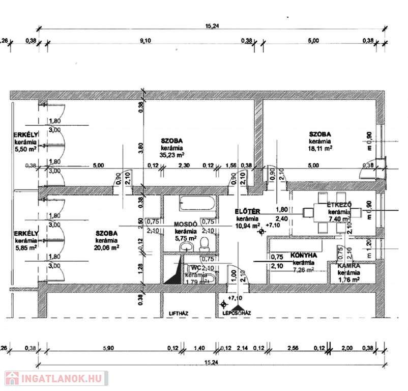Debrecen Belvárosában a Piac utcán eladó egy 116 nm alapterületű második emeleten található, tégla építésű lakás.