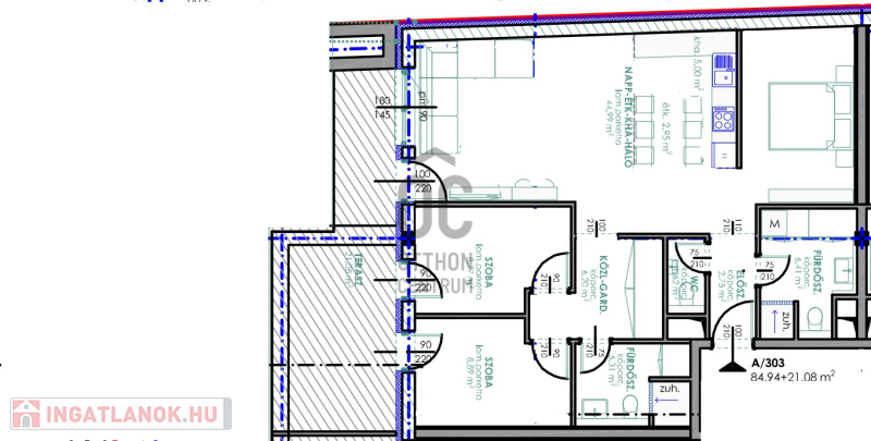 Debrecen abszolút Belvárosában, de mégis csendes övezetben, modern, egyedi megjelenésű, liftes társasház épül a földszinten 4 üzlettel és a -1 szinten teremgarázs parkolókkal. A lakások között vannak földszinti kertkapcsolatosak, és penthouse jellegűek is. A projekt tervezésénél, az elsődleges szempont az otthonos, élhető lakások építése volt. Az épületben helyet kapó lakások mindegyike egyedileg kialakított tágas terekkel, jó funkcionalitással és nagy méretű loggiákkal,teraszokkal rendelkezik. A lakások minőségi anyagok felhasználásával készülnek, a legkorszerűbb 3 rétegű üvegezésű ablakokkal, hőszivattyús klímával ellátottak. A belvárosban található ingatlan pár perc sétára található a Nagytemplomtól, a Piactól és a Bevásárló központoktól. Egyéb információért hívjon bizalommal. Ez a 3. emeleti lakás 84,94 nm-es, nappali-étkező-konyha +hálófülkés, +2 szobás, 21,08 nm-es terasszal.