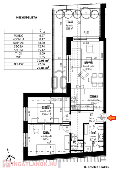 II. emelet 3. lakás 71 nm + 23 nm terasz: