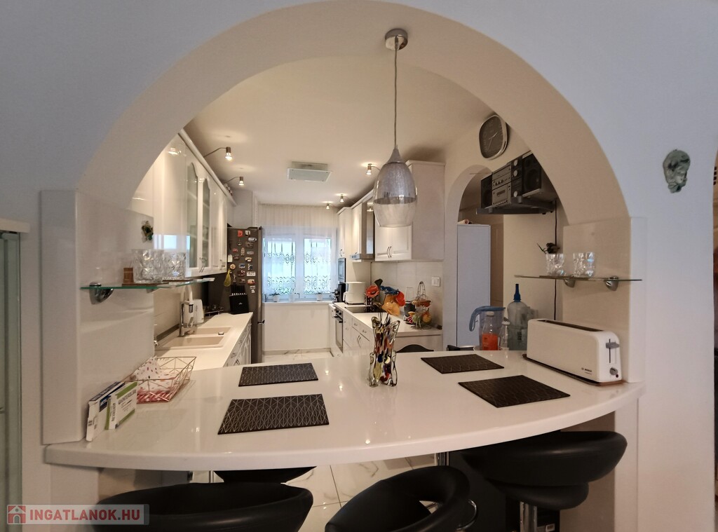 - Beépített, minőségi gépekkel szerelt gépesített konyha. Elektromos tűzhely, sütő, beépített mosogató, mikrohullámú sütő, páraelszívó a konyha részét képezik.