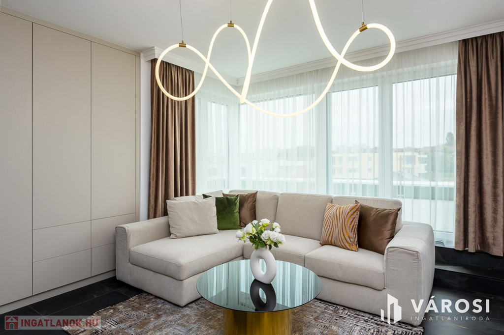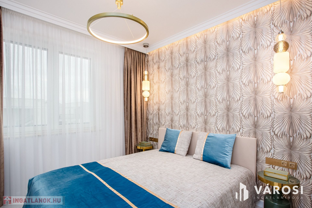 - **Helyiségek:** 2 szoba, 1 nappali, amerikai konyha, fürdőszoba és külön WC a maximális kényelem érdekében.