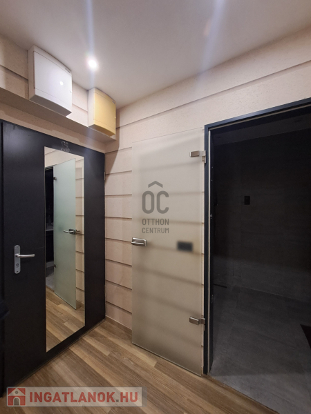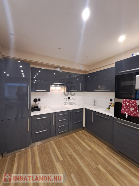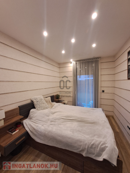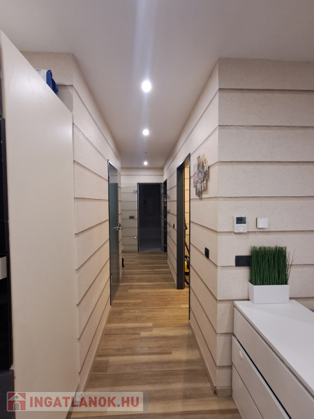 A konyhába egyedi tervezésű gépesített konyhabútor (főzőlap, sütő, mikró, mosogatógép, hűtő, elszívó) került beépítésre. Az egyik szobában egy hatalmas méretű, praktikus belső elrendezéssel bíró gardróbot alakítottak ki. A fürdőszobába nívós burkolatok és szaniterek kerültek. A prémium kivitelezés, a beépített bútorok és szekrények, valamint a LED hangulatvilágítás mind hozzájárulnak ahhoz, hogy otthona stílusos és kényelmes legyen.