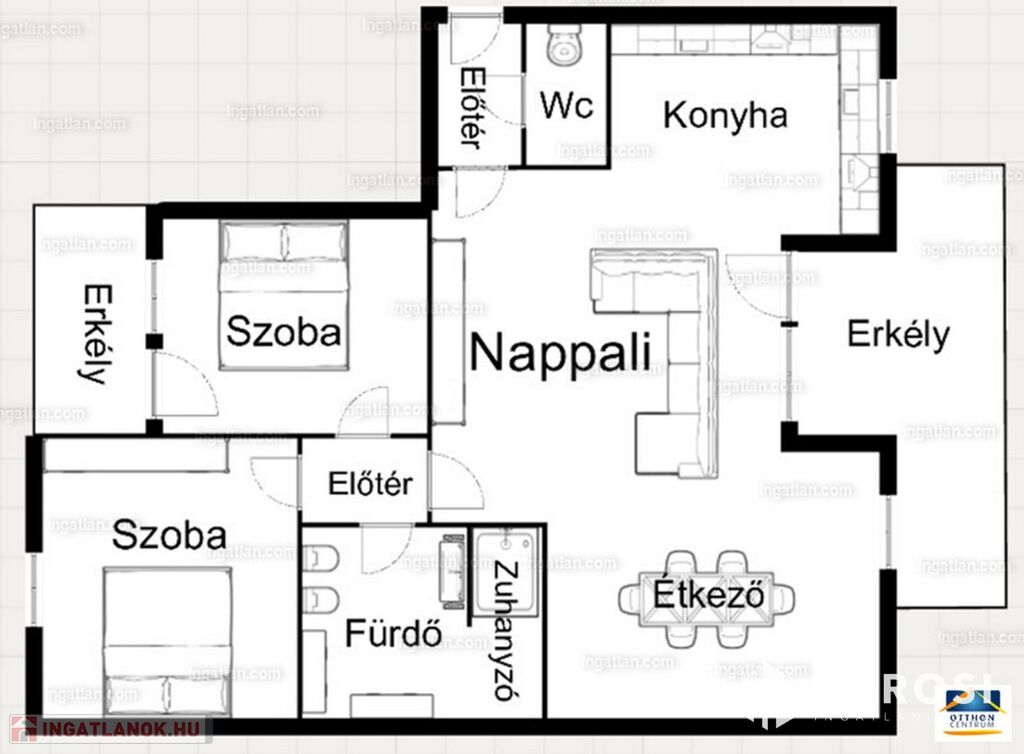 - **Szobák száma:** 2 hálószoba + 1 nappali