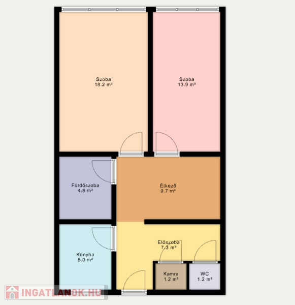 - nappali: 18 m²-es, világos, tágas
