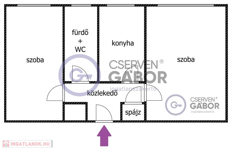 A 49 m2-es lakótér tágas, praktikus elrendezésű. Szobái tágasak, külön bejáratúak és egymástól jól elszeparáltak. A két szoba „között” kapott helyet a konyha, ami méretéből fakadóan étkezőként is szolgál, valamint a fürdő, ami magába foglalja a WC-t is. A fürdő kapcsán kiemelendő, hogy nagyméretű ablakkal rendelkezik, így abszolút világos és jól szellőztethető. A helyiségeket összekötő közlekedőből, a konyhával szemközt még egy spájz is nyílik.