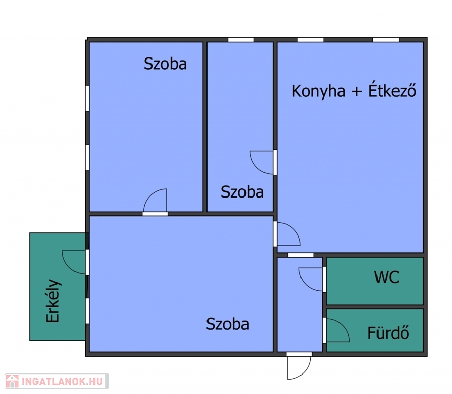 Kialakítás: Erkélyes, külön fürdőszoba és WC