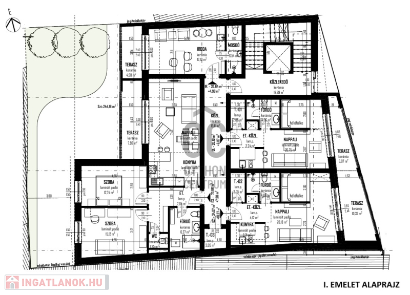 Földszinten 1 db üzlethelyiség és fedett/nyitott gépjárműtárolók (8MFt + ÁFA), melyek megvásárlása nem szükségszerű!