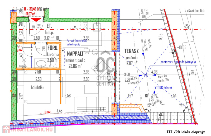 III. emelet 2/B. lakás 33 nm + 17 nm terasz: