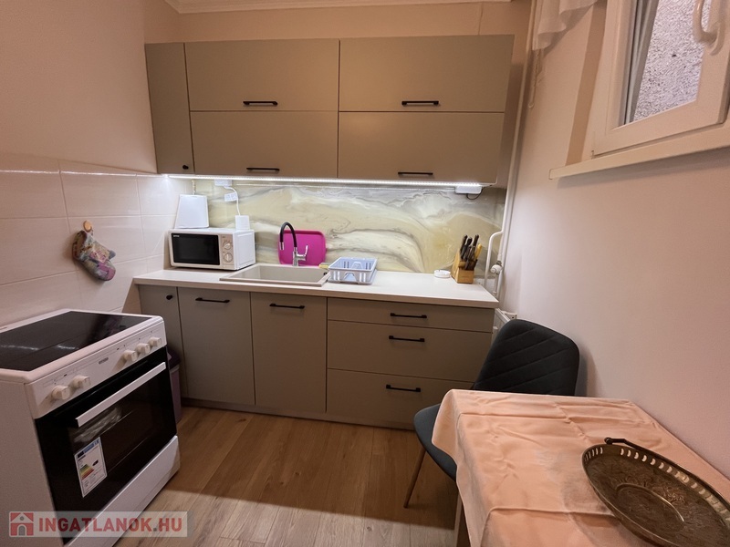 Teljes körûen felújított, bútorozott otthon az Újkert szívében Akár garázzsal! Debrecen egyik legkedveltebb és legélhetõbb városrészében, az Újkertben eladóvá vált egy kiváló adottságokkal rendelkezõ, 53 nm-es, 2 különnyíló szobás, erkélyes lakás. Az ingatlan teljes körû felújításon esett át, így Önnek már semmilyen munkálattal nem kell foglalkoznia. A lakás teljes bútorzattal együtt kerül értékesítésre, így valóban csak a bõröndjét kell hoznia! Miért érdemes ezt választania? Kiváló elrendezés: Két különnyíló szoba, ideális pároknak, kisebb családoknak vagy befektetésnek. Teljes körûen felújított: Modern, igényes belsõ tér, azonnal költözhetõ állapot. Bútorozott: A vételár tartalmazza a berendezési tárgyakat, így idõt és költséget spórol. Erkély: Hangulatos saját külsõ tér a reggeli kávézáshoz. Parkolás: Az utcán a parkolás ingyenes, de igény esetén saját garázs is vásárolható hozzá 12,9 millió forintért. Kiváló lokáció: A környék infrastruktúrája tökéletes: a közelben minden megtalálható, ami a mindennapokhoz szükséges: Boltok, szupermarketek Orvosi rendelõ, gyógyszertár Posta Kiváló tömegközlekedési kapcsolatok Az ingatlan rugalmasan megtekinthetõ, tehermentes és azonnal birtokba vehetõ! Amennyiben felkeltette érdeklõdését ez a remek lehetõség, várom hívását.
