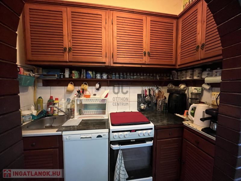 A konyha és előszoba bútorai, valamint a beltéri ajtók (egyedi) fából készültek, ezzel természetes meleg hangulatot adnak az otthonnak. A konyhához szorosan kapcsolódik egy kis kamra is.