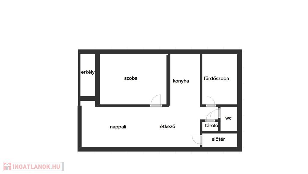 Az ingatlan összesen 57 m², amelyből 50 m² a lakótér. A lakás nappali–étkező–konyhás elrendezésű, egy külön nyíló szobával, tágas fürdőszobával és külön WC-vel rendelkezik.