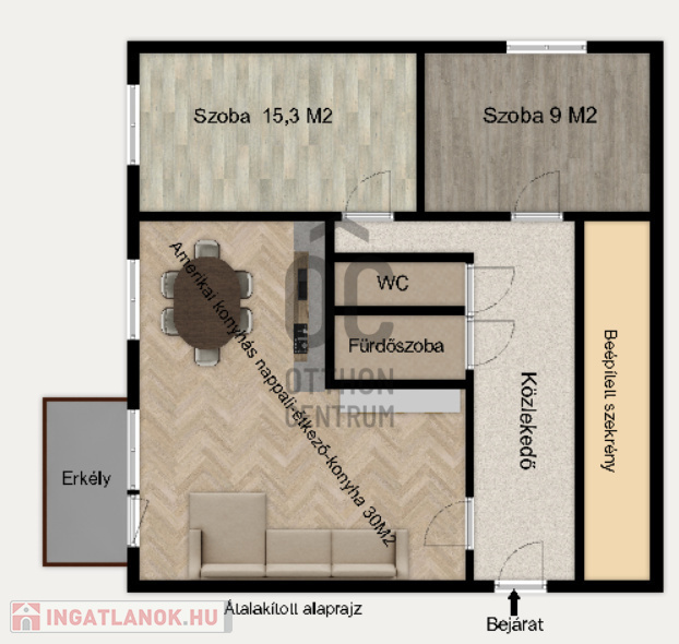 - remek elosztású a lakás, átalakítható egy légterű nappali-konyha-étkezőssé