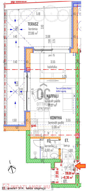II. emelet 3/A. lakás 29 nm + 23 nm terasz: