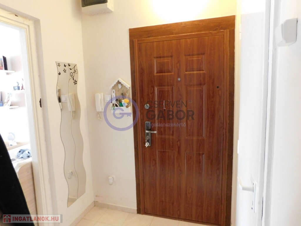 Az épület, amiben az eladásra kínált lakás helyet kapott, egy tízemeletes, klasszikus panelház, szintenként csupán három lakással. Említett lakásunk a nyolcadik emeleten van, déli és északi tájolással, és nagyon jó kilátással. Az erkélyes oldal néz délre, vagyis a hátsó park felé, a konyhai oldal pedig északra, tehát a szerviz út felé.