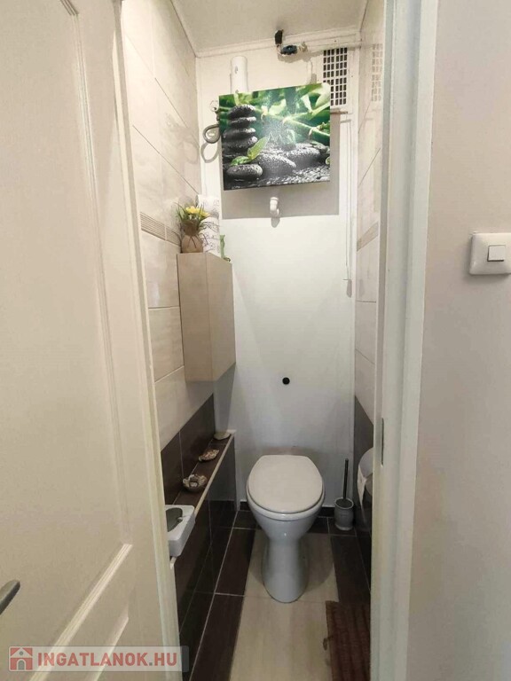- A fürdőszoba, WC járólappal burkolt, a többi helyiség padlózata laminált parketta.