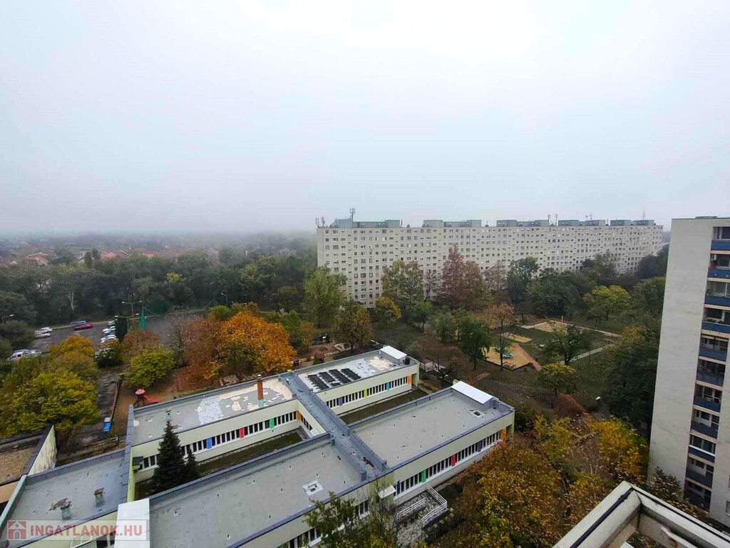 - Tízemeletes társasház tizedik emelete. Csendes, meleg, panorámakilátás.