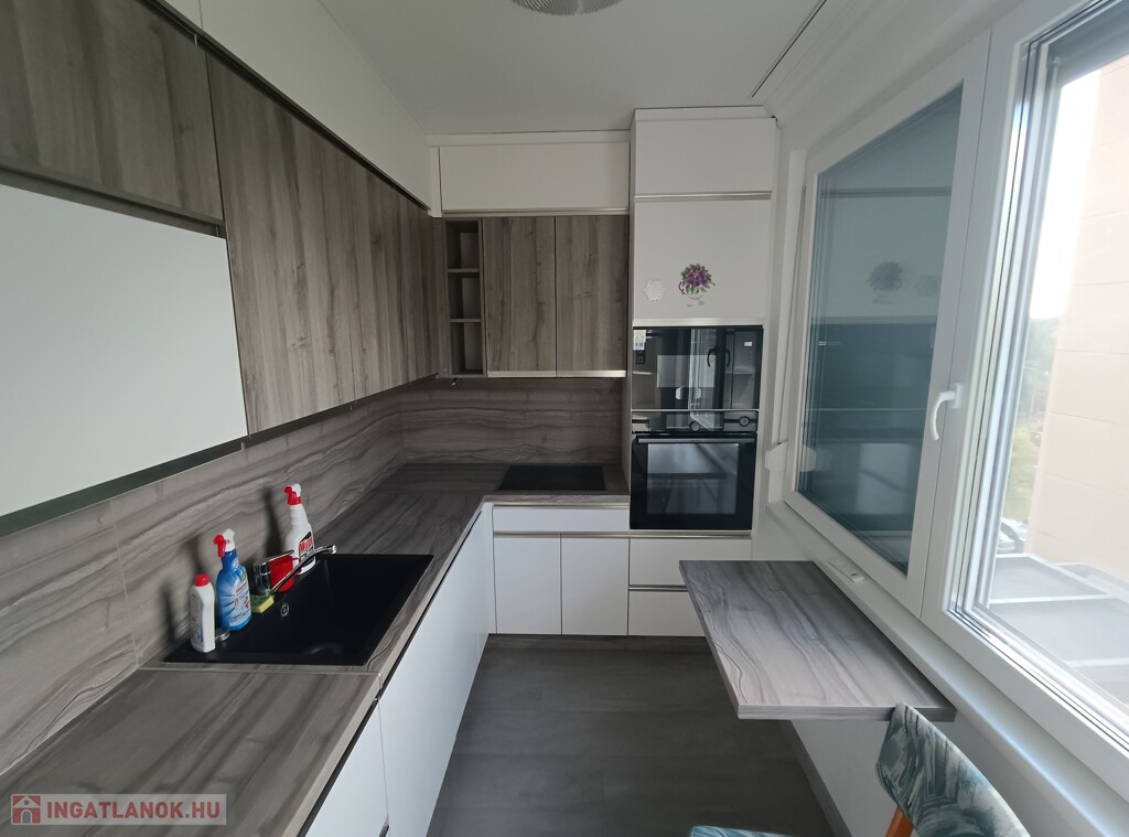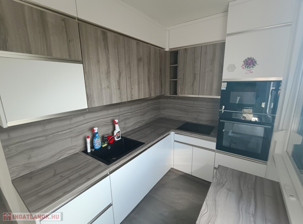 - Beépített, gépesített konyha, amiben indukciós tűzhely páraelszívóval, mosogatógép, beépített mikró és sütő található.