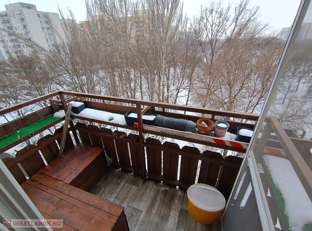 - A nyugati fekvésű, parkra néző erkélye vinyl padlóval burkolt és tárolós ülőkék vannak kihelyezve.