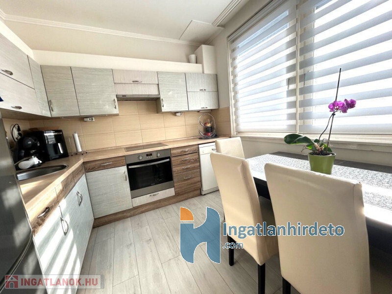 A lakás jó állapotú, nem igényel azonnali kompromisszumokat: cserélt beltéri ajtók, modern burkolatok, beépített, gépesített konyha, praktikus gardrób, klíma a nappaliban. A műanyag nyílászárók redőnnyel, szúnyoghálóval felszereltek, a távfűtés egyedi mérésű, a rezsi jól tervezhető. A fürdő és a WC külön helyiségben kapott helyet, ami a mindennapokban sokkal többet számít, mint elsőre gondolnánk.