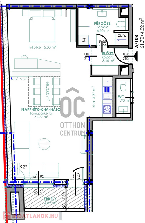 Debrecen abszolút Belvárosában, de mégis csendes övezetben, modern, egyedi megjelenésű liftes társasház épül a földszinten 4 üzlettel és a -1 szinten teremgarázs parkolókkal. A lakások között vannak földszinti kertkapcsolatosak, és penthouse jellegűek is. A projekt tervezésénél, az elsődleges szempont az otthonos, élhető lakások építése volt. Az épületben helyet kapó lakások mindegyike egyedileg kialakított tágas terekkel, jó funkcionalitással és nagy méretű loggiákkal, teraszokkal rendelkezik. A lakások minőségi anyagok felhasználásával készülnek, a legkorszerűbb 3 rétegű üvegezésű ablakokkal, hőszivattyús klímával ellátottak. A belvárosban található ingatlan pár perc sétára található a Nagytemplomtól, a Piactól és a Bevásárló központoktól. Egyéb információért hívjon bizalommal. Ez az 1. emeleti lakás 61,72 nm-es, nappali-étkező-konyha, + hálófülkés, 4,82 nm-es erkéllyel.