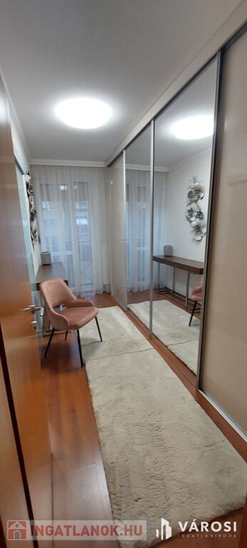A lakásban több beépített gardrób is található, de az igazi különlegesség az egyik szobából 2022-ben kialakított modern tolóajtós gardrób. Minden ablak zöld parkra néz, hatalmas ablakfelületekkel, világos és csendes lakás. Tájolása É-D.