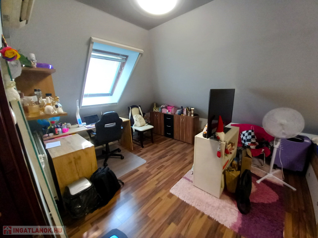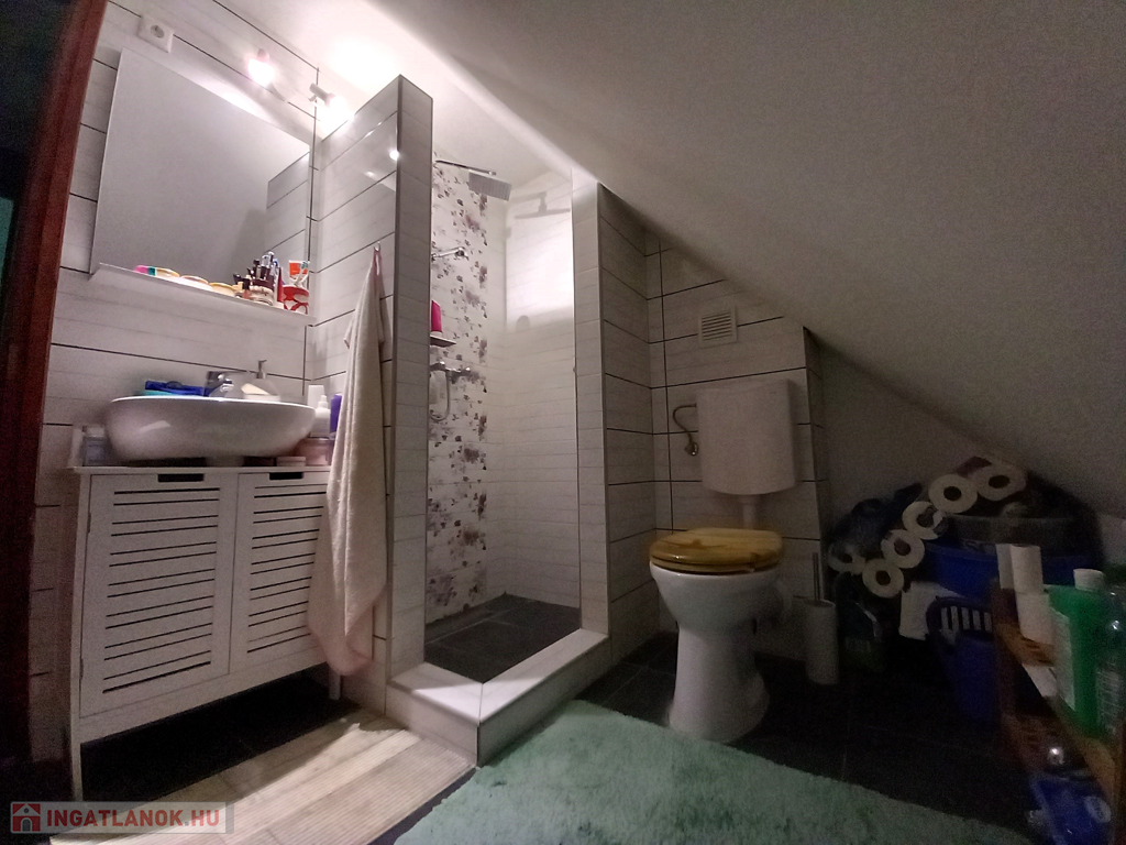 - A felső szobák, és az előszoba padlózata laminált parketta, a többi helyiség csempével burkolt.