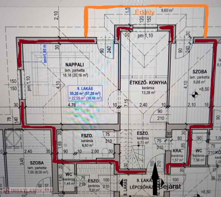 Az ingatlan az 1. emeleten helyezkedik el, 54,75 m2 alapterületű + 4,8 m2 ...