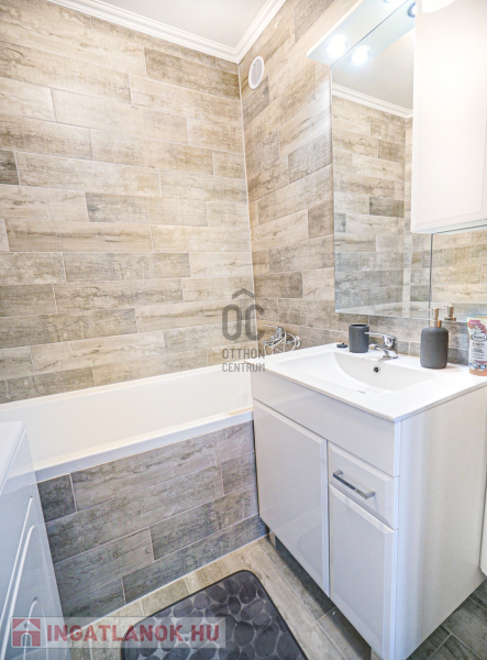 A kialakításban és burkolataiban megújult fürdőszoba és a WC külön helyiségben,