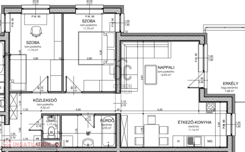 - 2 külön nyíló hálószobás + nagy méretű nappali konyhával