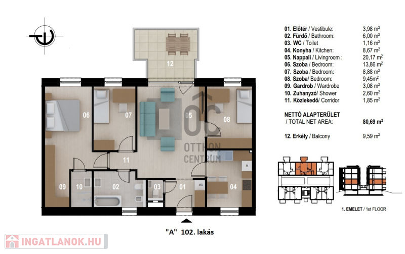"A" I. emelet 102. lakás: 89.555.714.- + ÁFA