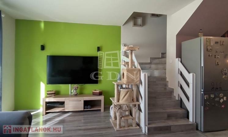 Az 1.emeleten, 71,59 m²-es, 2009-ben épült lakás, amely egy rendezett, 13 lakásos társasházban található. Az alsó szinten amerikai konyhás nappali, fürdőszoba található. Fent pedig 3 hálószoba + gardróbszoba kapott helyet (a gardrób akár fürdőszobává is alakítható, a kiállások adottak).