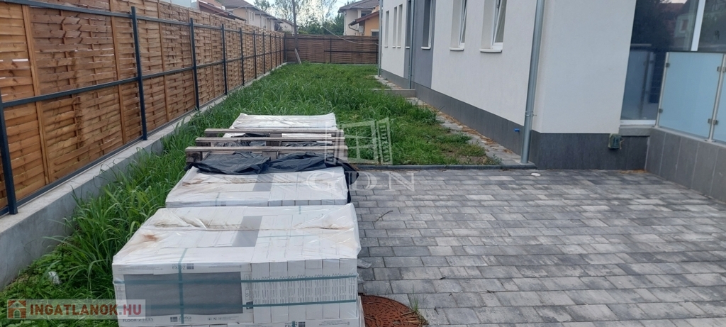 Az ingatlan bejáratát a kizárólag ehhez a lakáshoz tartozó tartozó kerten keresztül lehet megközelíteni. Minden lakás külön albetét lesz, tehát saját helyrajzi számmal rendelkeznek.