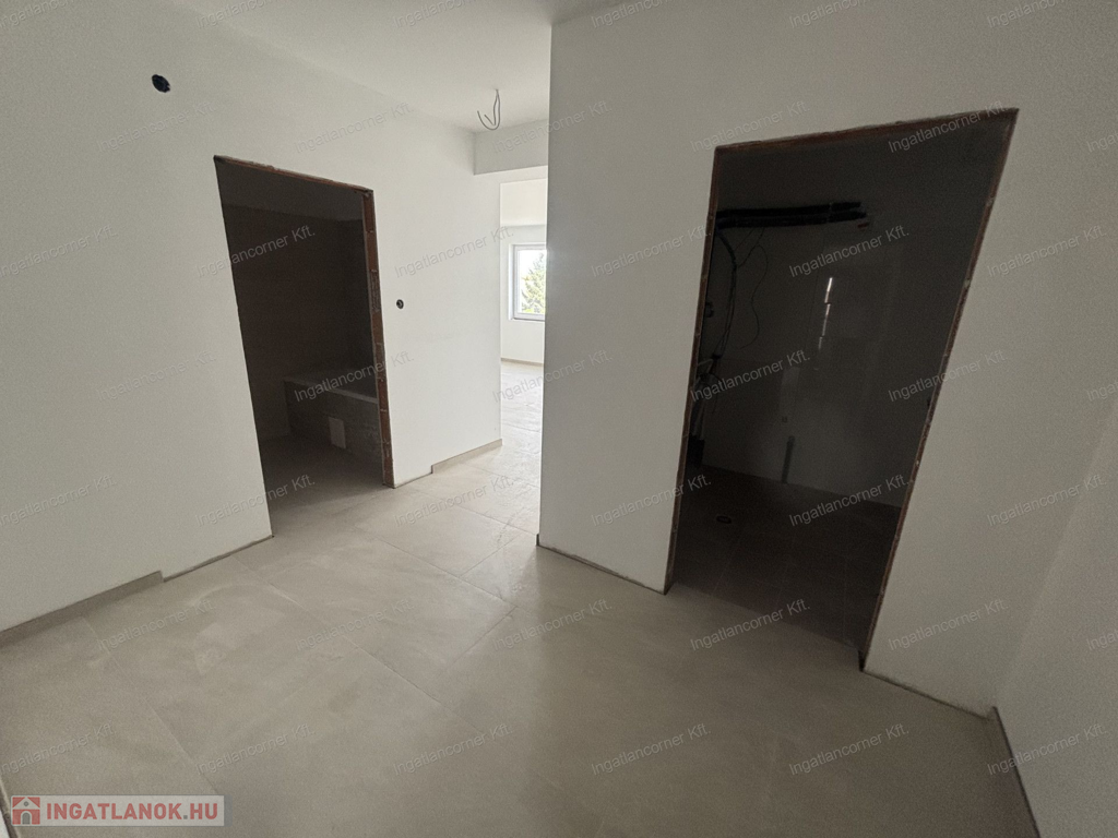 3, lakás nettó 60,77 m2 + 9,29 m2 terasz, nappali + 2 háló, 119 m2 telek, fan-coil klíma (a hálószobákban kiállás előkészítés), riasztó, kaputelefon, 2db parkoló