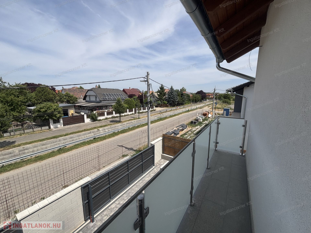 2, lakás nettó 57,03 m2 + 13,83 m2 terasz, nappali + 2 szoba, 173,5 m2 telek, fan-coil klíma (a hálószobákban kiállás előkészítés), riasztó, kaputelefon, tároló, 2 db parkoló. utca