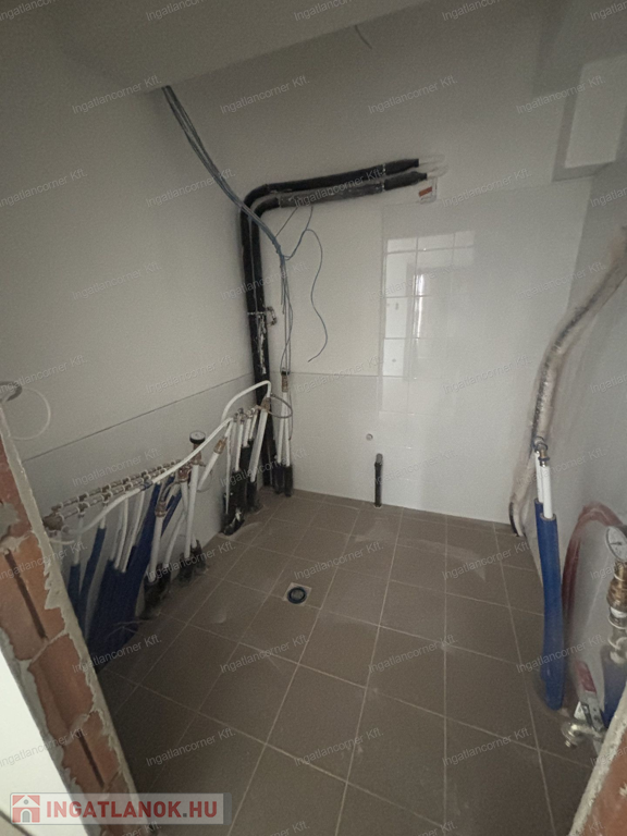 8, lakás nettó 57,05 m2, + 5,4 m2 erkély, nappali + 2 háló, fan-coil klíma (a hálószobákban kiállás előkészítés), riasztó, kaputelefon, 2db parkoló